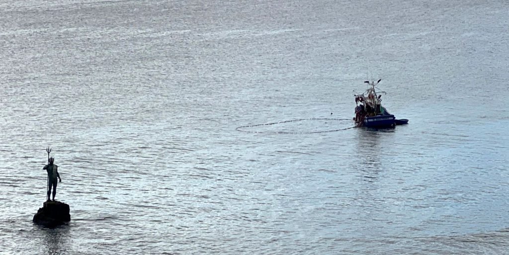 UN BARCO DE PESCA SUELTA SUS REDES ATRAPANDO A DOS BAÑISTAS EN EL CANAL DE NADO DE MELENARA EN TELDE