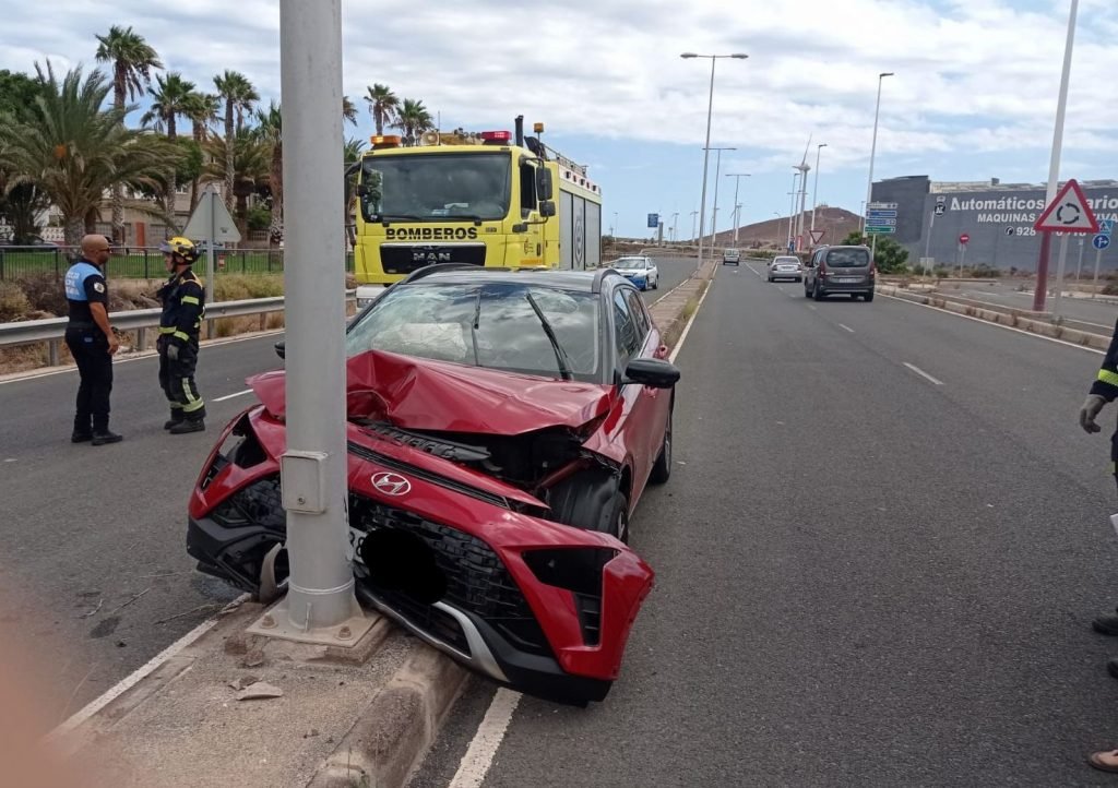 LOS BOMBEROS TIENEN QUE EXCARCELAR A UNO DE LOS OCUPANTES DE UN VEHÍCULO QUE SE ESTRELLÓ CONTRA UNA FAROLA EN ARINAGA