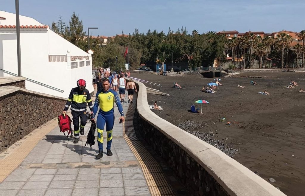 LOS BOMBEROS RESCATAN DEL MAR A DOS PERSONAS EN APUROS EN LA PLAYA DE HOYA DEL POZO EN TELDE