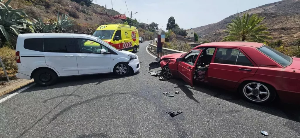 APARATOSO ACCIDENTE FRONTAL ENTRE DOS COCHES EN LA CARRETERA DE TELDE A VALSEQUILLO
