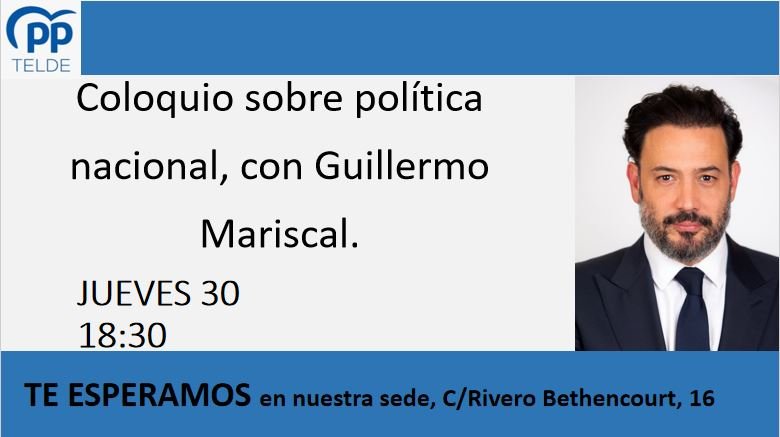 El Partido Popular de Telde, invita a sus afiliados, simpatizantes y público en general a una charla coloquio que tendrá lugar, el próximo jueves 30 de enero a las 18:30h, en la sede local que está en la calle Rivero Bethencourt,16 sobre política nacional, impartida por el diputado nacional por la provincia de Las Palmas […]