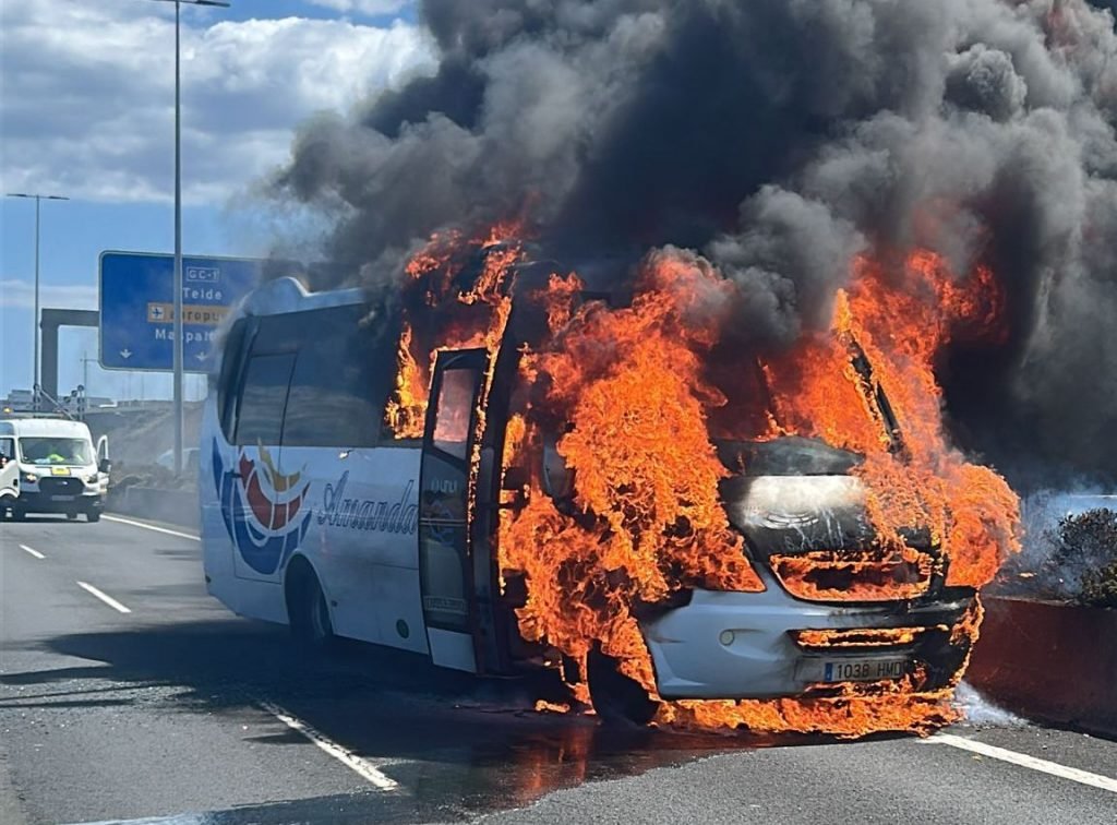 RETENCIONES KILOMÉTRICAS POR EL INCENDIO DE UNA MICROGUAGUA EN LA GC-1 A LA ALTURA DE LAS TERRAZAS EN TELDE