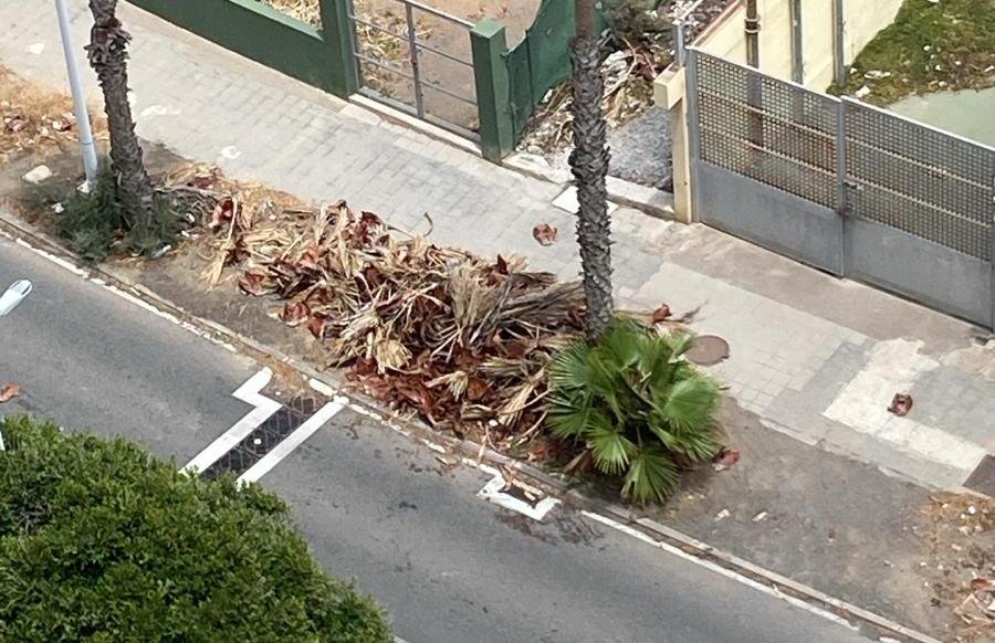 LA COPA DE UNA PALMERA SE DESPRENDE EN LA CALLE ÍDOLO DE JINÁMAR SUPONIENDO UN PELIGRO PARA VEHÍCULOS Y TRANSEÚNTES