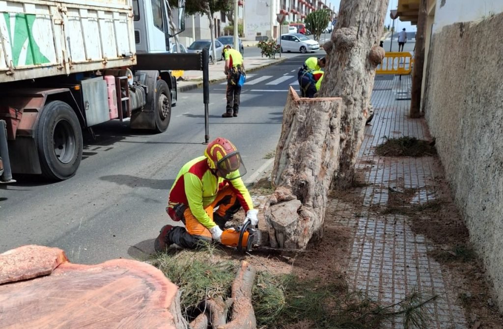 PARQUES Y JARDINES EN TELDE TALA EN SALINETAS CINCO PINOS MARINOS POR HONGOS, PUDRICIÓN Y RIESGO DE CAÍDA