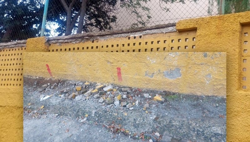 SIGUEN LAS DENUNCIAS POR EL ABANDONO DE LOS COLEGIOS DE TELDE: PELIGROSO DERRUMBE DE PARTE DEL MURO DEL CEIP AMELIA VEGA DE MONZÓN