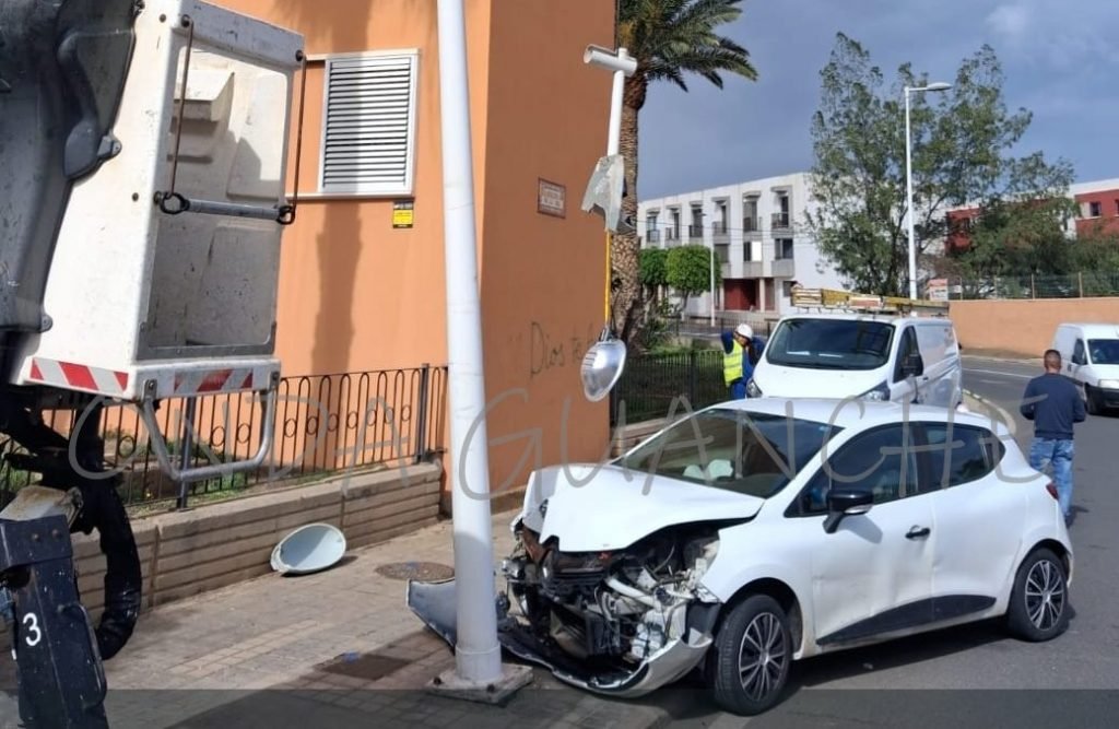 PIERDE EL CONTROL DE SU VEHÍCULO Y LO DESTROZA CONTRA UNA FAROLA EN LAS REMUDAS (TELDE)