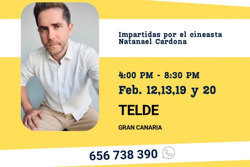 El próximo mes de febrero, Natanael Cardona, impartirá en Telde, un ciclo de clases intensivas de Guion, Interpretación y Dirección, concretamente los días, 12,13, 19 y 20, que compartirá su experiencia cinematográfica a los futuros talentos de la isla. Cardona lleva impartiendo estos cursos intensivos con notable éxito en diferentes municipios de Gran Canaria, a través […]