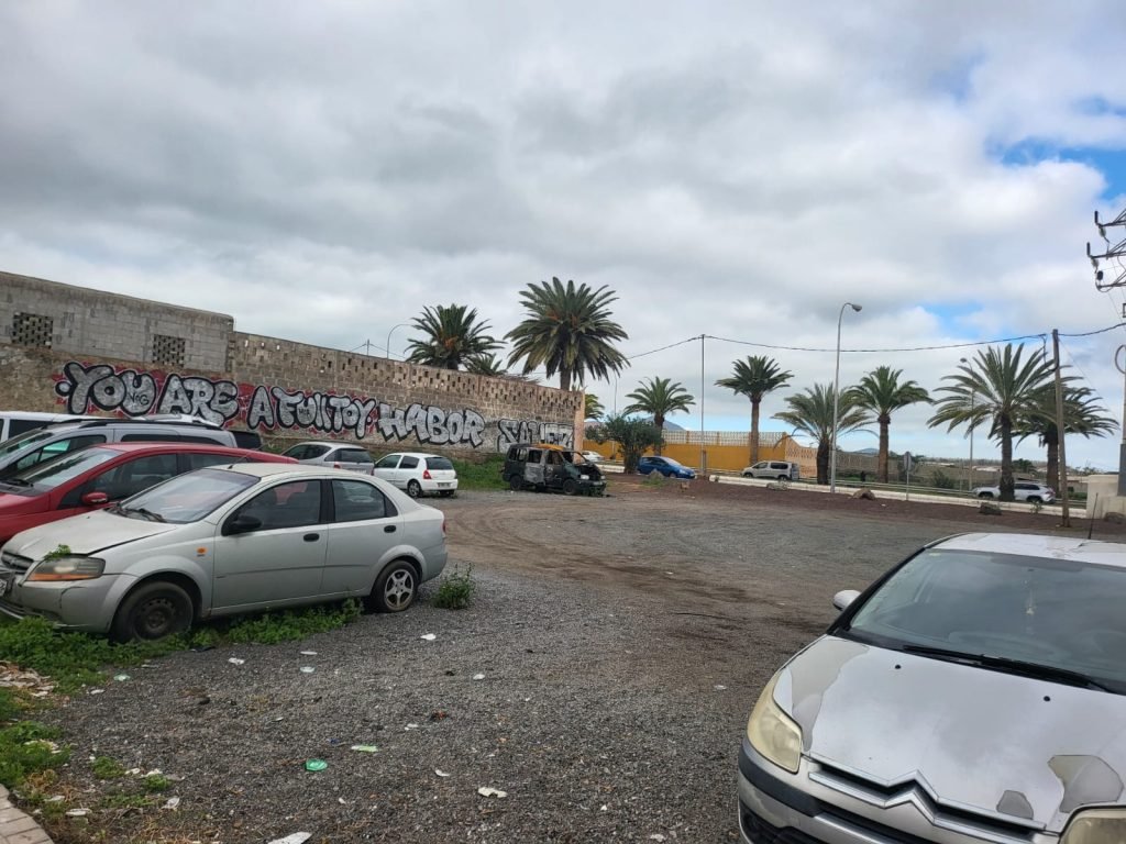 COCHES CALCINADOS Y ACERAS DESTROZADAS: LA IMAGEN DEL ABANDONO EN PLENO CORAZÓN DE TELDE