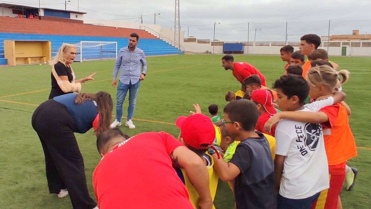El concejal de Actividad Física y Deportes del Ayuntamiento de Telde, Cristhian Santana Caballero, acudía al campus que viene realizando el CD Longueras en el Campo Municipal Antonio Guerra “Guerrita”, feudo de la entidad rojilla y que es el punto neurálgico de del desarrollo de las actividades que disfrutan los más de cuarenta niños de entre 4 y 15 años de edad que del entorno al barrio de San José de Las Longueras, están participando en este verano.