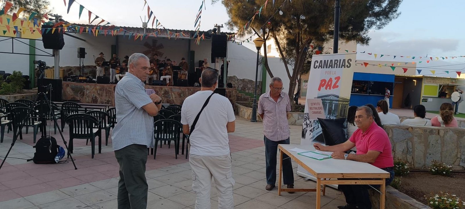 Este viernes 25 de julio y durante el pregón de las fiestas del barrio teldense de La Majadilla, el comité local de Telde de la plataforma Canarias Por La Paz llevó a cabo una acción de recogida de firmas en la plaza, para sensibilizar a los vecinos en apoyo al Estatuto de Neutralidad de Canarias.