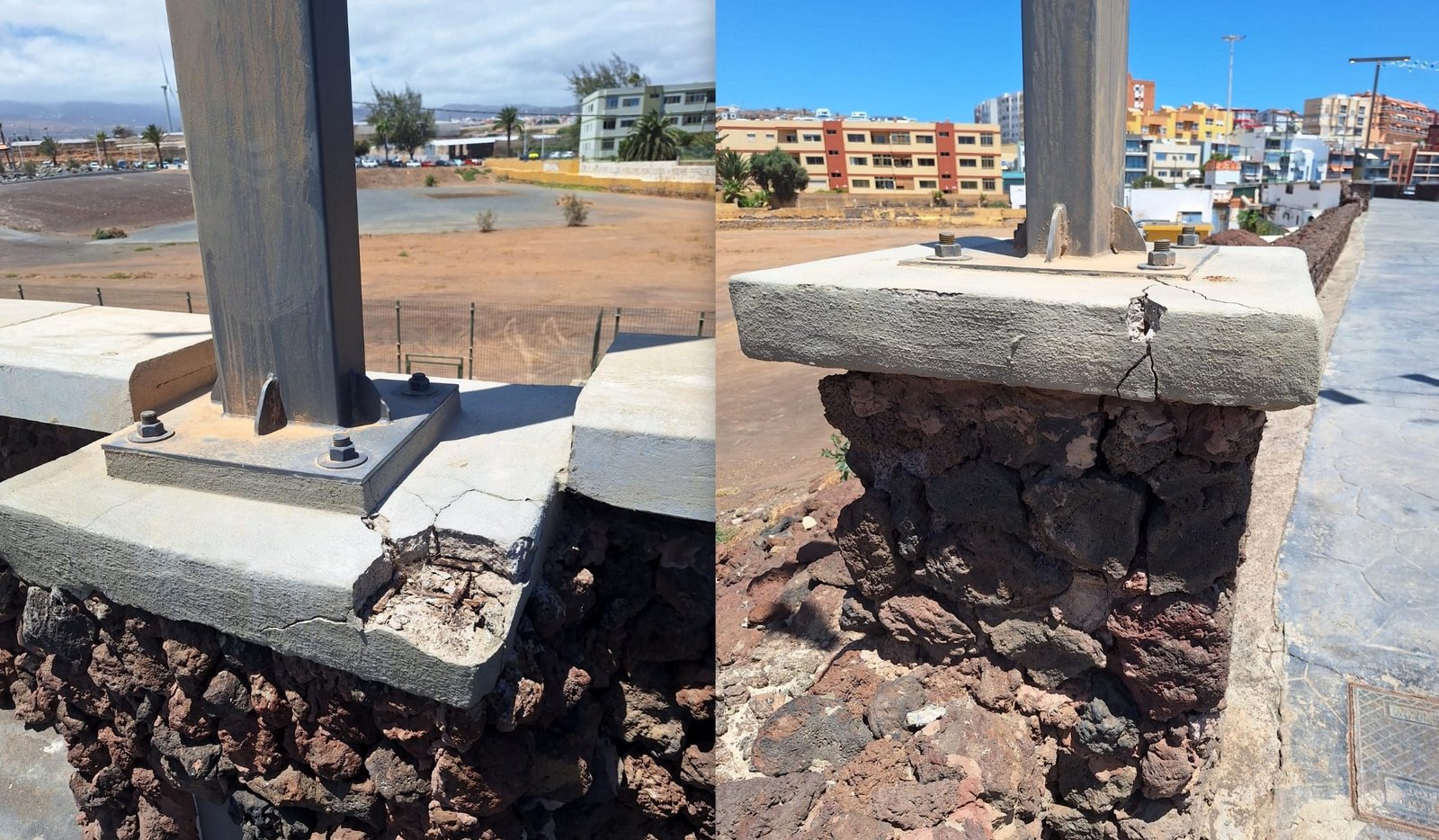 Entre otras deficiencias las bases presentan deficiencias y oxidación en la tornillería, los pernos y en los báculos de las mismas.