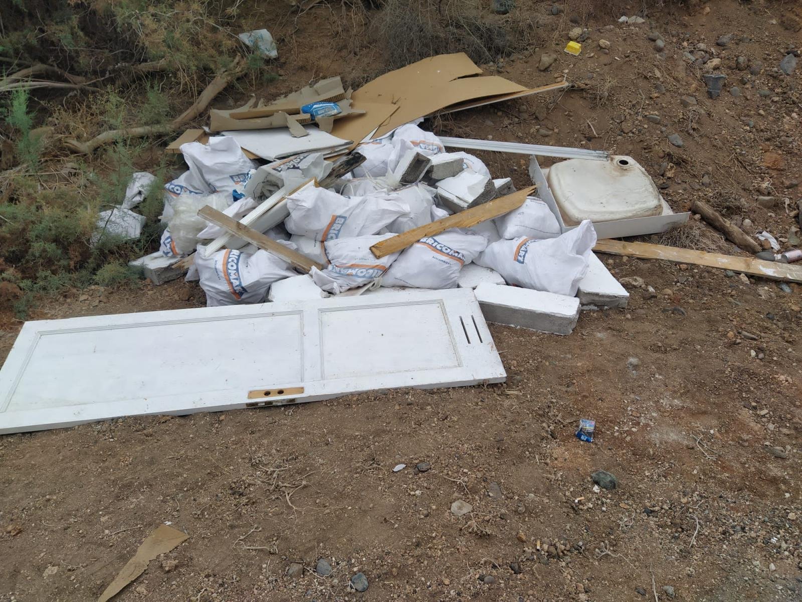 Decenas de montones de sacos de escombros, puertas, colchones, toallas sucias, puertas, ruedas de coche viejas y hasta medio coche abandonado, es el panorama que te encuentras en un paseo por el Barranco Real de Telde, concretamente en la desembocadura de Boca Barranco, al lado mismo de la autopista G.C.1.