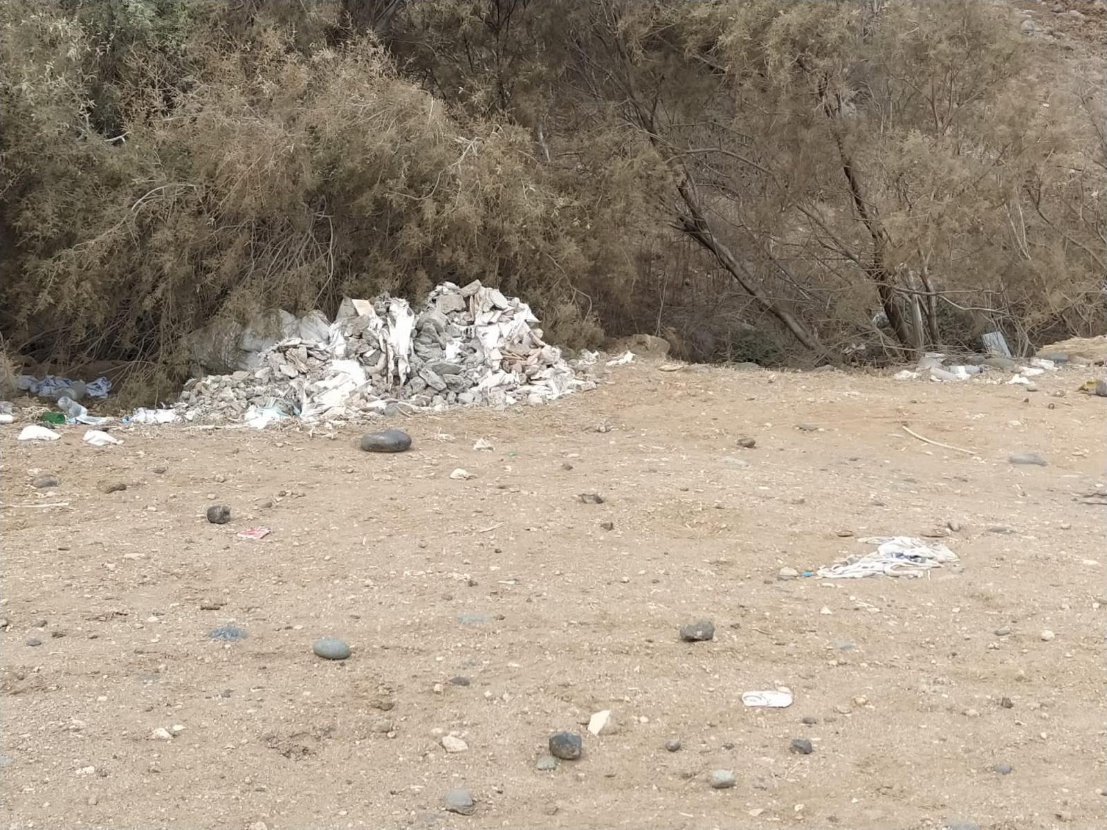 Decenas de montones de sacos de escombros, puertas, colchones, toallas sucias, puertas, ruedas de coche viejas y hasta medio coche abandonado, es el panorama que te encuentras en un paseo por el Barranco Real de Telde, concretamente en la desembocadura de Boca Barranco, al lado mismo de la autopista G.C.1.