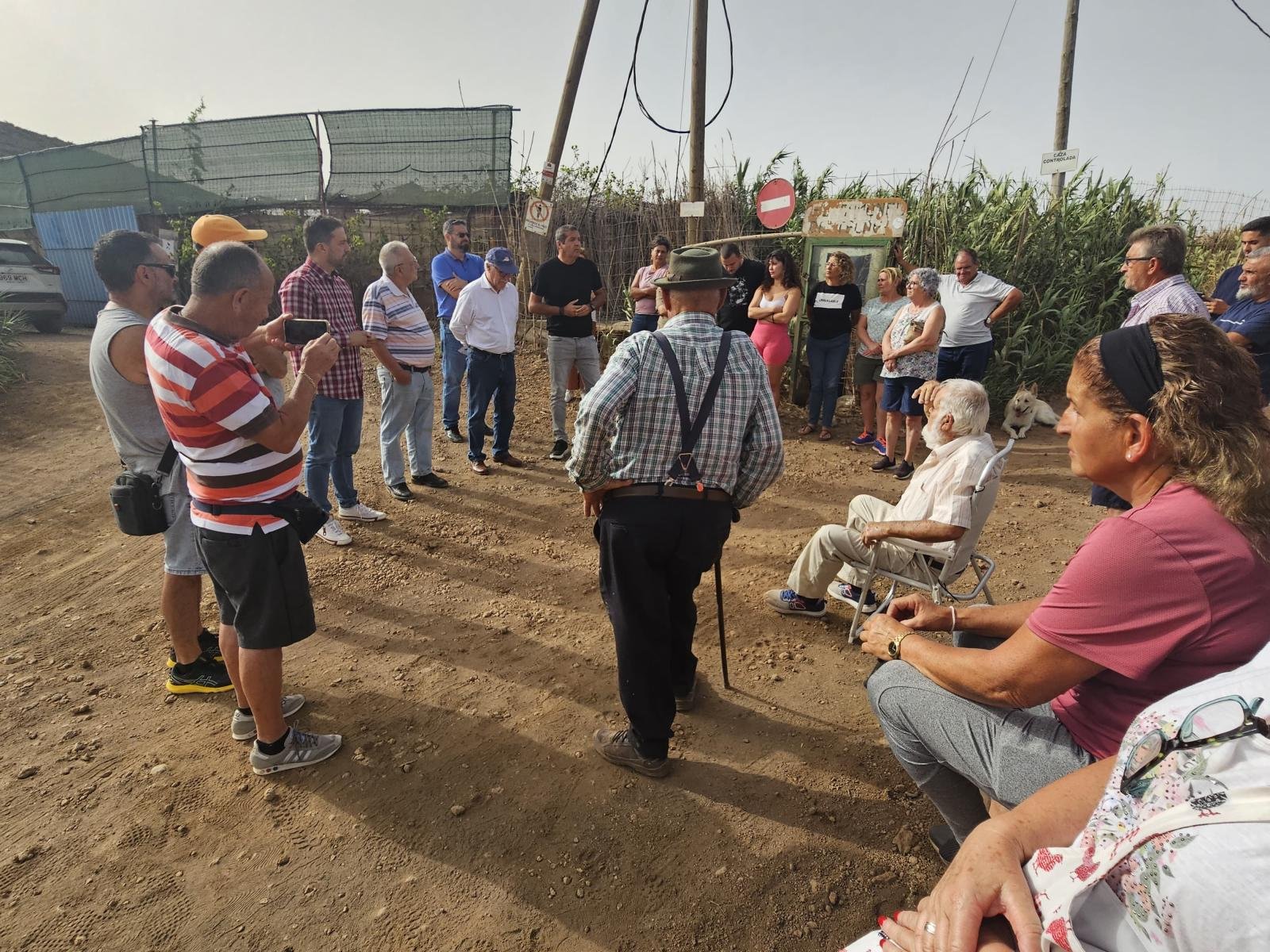 El alcalde de Telde, Juan Antonio Peña, el edil de Vías y Obras, Iván Sánchez, y el consejero de área de Sector Primario, Soberanía Alimentaria y Seguridad Hídrica, Miguel Hidalgo, visitaron en la mañana de este miércoles el sector de El Gamonal. En el lugar esperaba una treintena de vecinos y familiares, que trasladaron la necesidad de mejorar el acceso al núcleo rural, ya que para llegar es necesario atravesar una vía de tierra y considerables socavones que casi imposibilitan el paso. En este sentido, se trata de una reclamación histórica, cuyos afectados no han conseguido que los compromisos pretéritos vieran la luz.