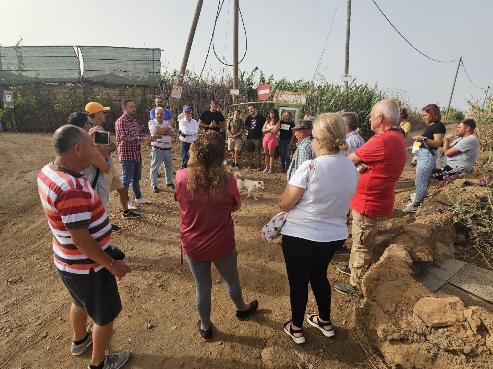 El alcalde de Telde, Juan Antonio Peña, el edil de Vías y Obras, Iván Sánchez, y el consejero de área de Sector Primario, Soberanía Alimentaria y Seguridad Hídrica, Miguel Hidalgo, visitaron en la mañana de este miércoles el sector de El Gamonal. En el lugar esperaba una treintena de vecinos y familiares, que trasladaron la necesidad de mejorar el acceso al núcleo rural, ya que para llegar es necesario atravesar una vía de tierra y considerables socavones que casi imposibilitan el paso. En este sentido, se trata de una reclamación histórica, cuyos afectados no han conseguido que los compromisos pretéritos vieran la luz.
