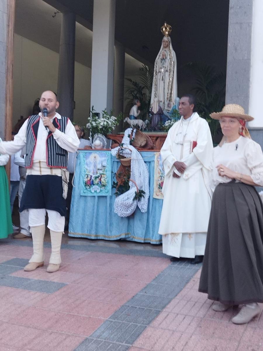 Los vecinos y vecinas de El Calero han peregrinado este sábado por las calles de este popular barrio teldense hasta las puertas de la Iglesia donde les espera su patrona, Nuestra Señora de Fátima, para recibir la suculenta ofrenda que todas las carretas han querido cargar y acercarse, para con este gesto, ofrecer ante la virgen su compromiso y solidaridad con aquellos que peor lo pasan en estos tiempos. A través de la Parroquia de Nuestra señora de Fátima estas ofrendas serán distribuidas entre aquellos que más lo necesitan.