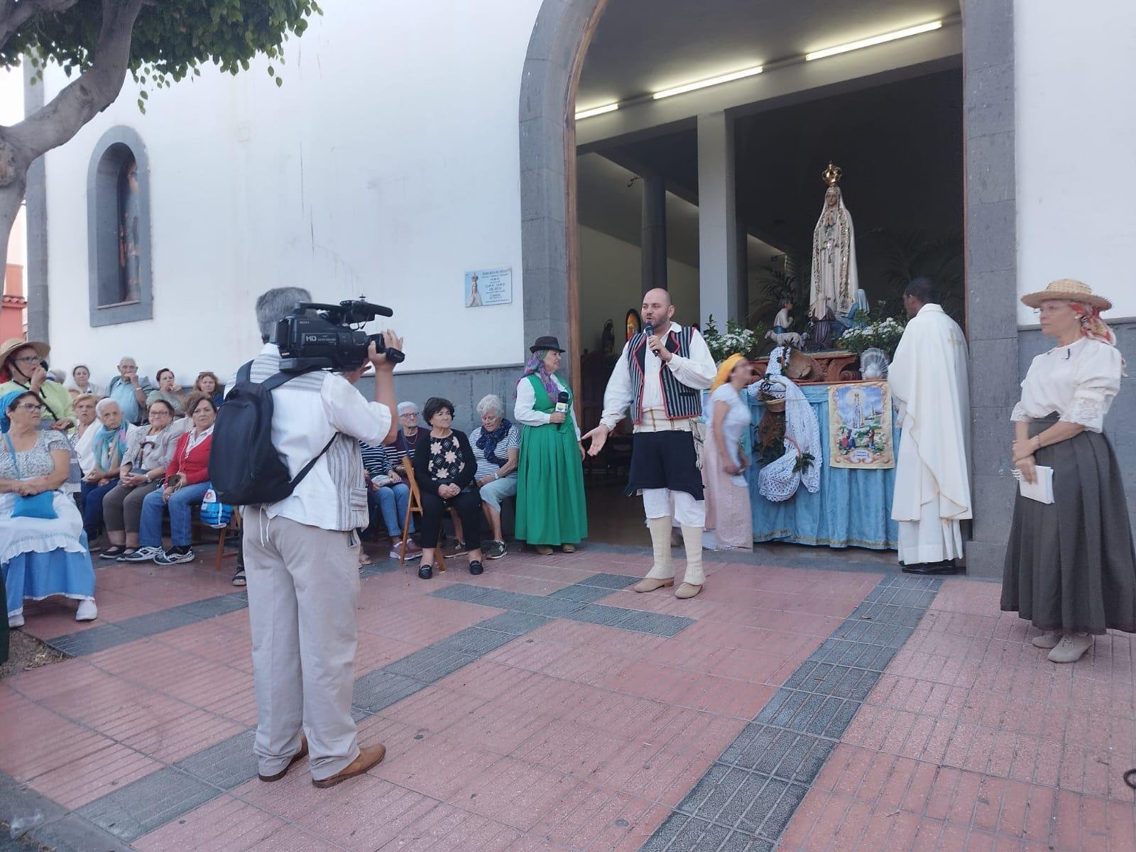 Los vecinos y vecinas de El Calero han peregrinado este sábado por las calles de este popular barrio teldense hasta las puertas de la Iglesia donde les espera su patrona, Nuestra Señora de Fátima, para recibir la suculenta ofrenda que todas las carretas han querido cargar y acercarse, para con este gesto, ofrecer ante la virgen su compromiso y solidaridad con aquellos que peor lo pasan en estos tiempos. A través de la Parroquia de Nuestra señora de Fátima estas ofrendas serán distribuidas entre aquellos que más lo necesitan.