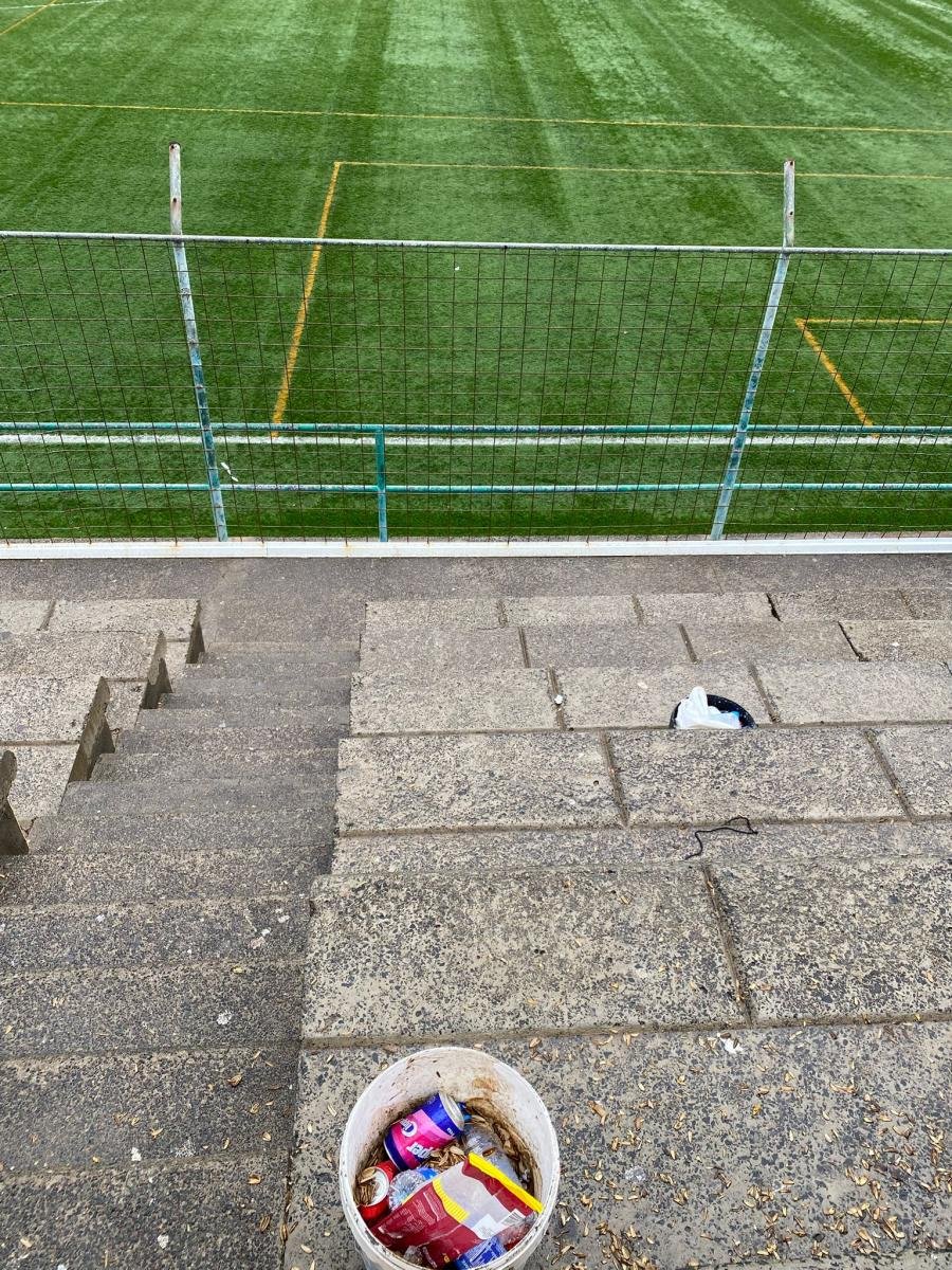 Mejor comentar que termino el partido y que el servicio de mantenimiento de deportes no limpió cuando iba a empezar el otro partido.