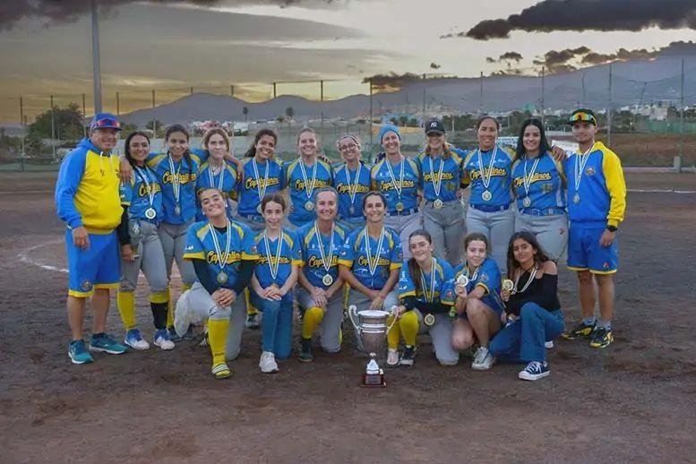 El concejal de Actividad Física y Deportes del Ayuntamiento de Telde, Cristhian Santana Caballero felicita al Club de Béisbol y Sófbol Capitalinos de Gran Canaria, al proclamarse campeón de la Copa de Canarias de Sófbol Femenino. En dicha copa celebrada en el Campo Municipal de Sófbol El Hornillo, el equipo grancanario vencía en la semifinal al conjunto Sox de Tenerife por 10-3, y en los dos juegos de la final, a Audaces de Tenerife por 12-3 y 4-9.