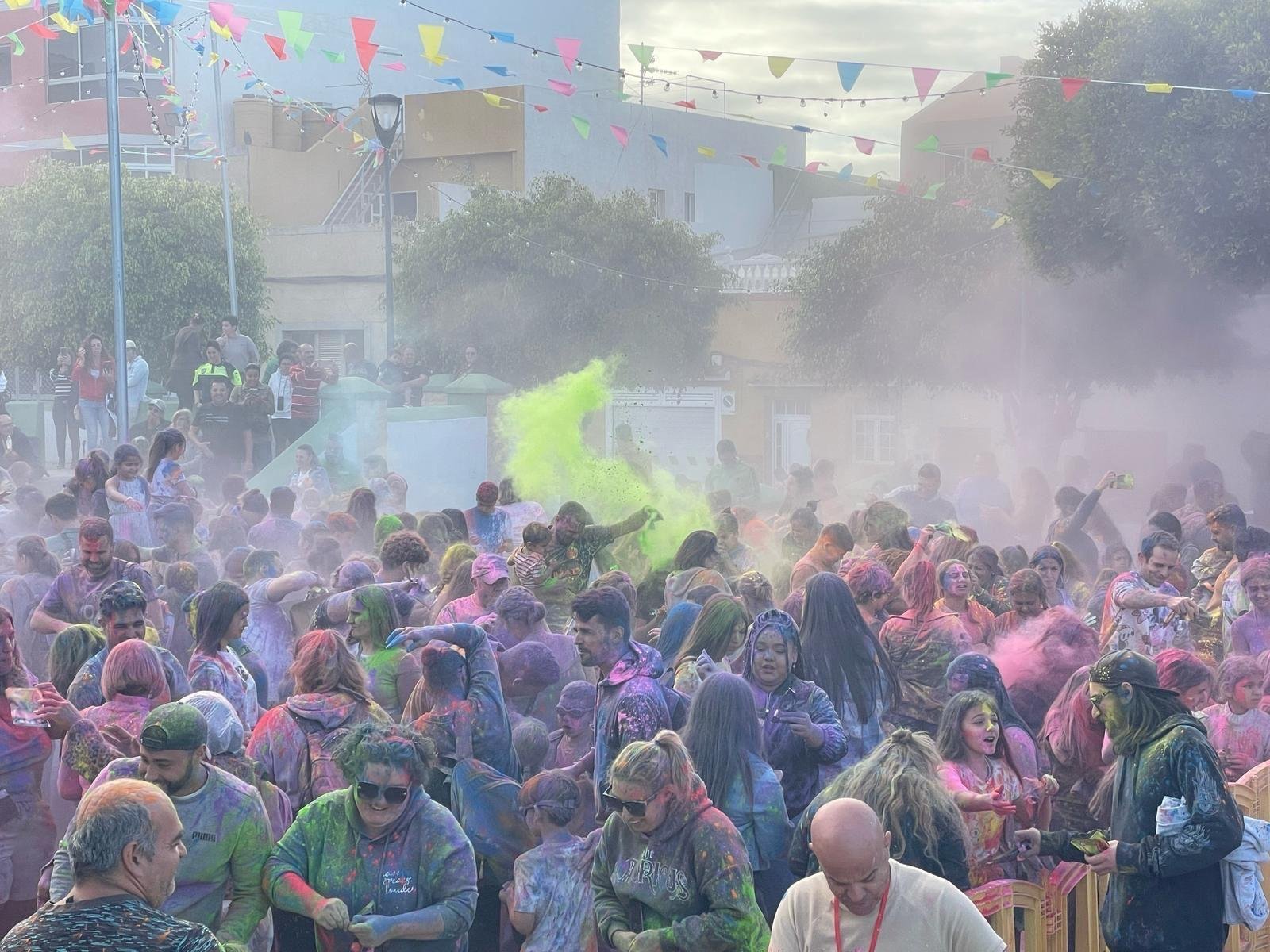 El barrio de El Calero en Telde vivió ayer una explosión de color en la plaza por sus fiestas en Honor a Nuestra Señora de Fátima con el día de la familia: Talleres, animación, cochitos y su fiesta Holi, increíble el ambiente y la participación de cientos de vecinas, vecinos y visitantes.