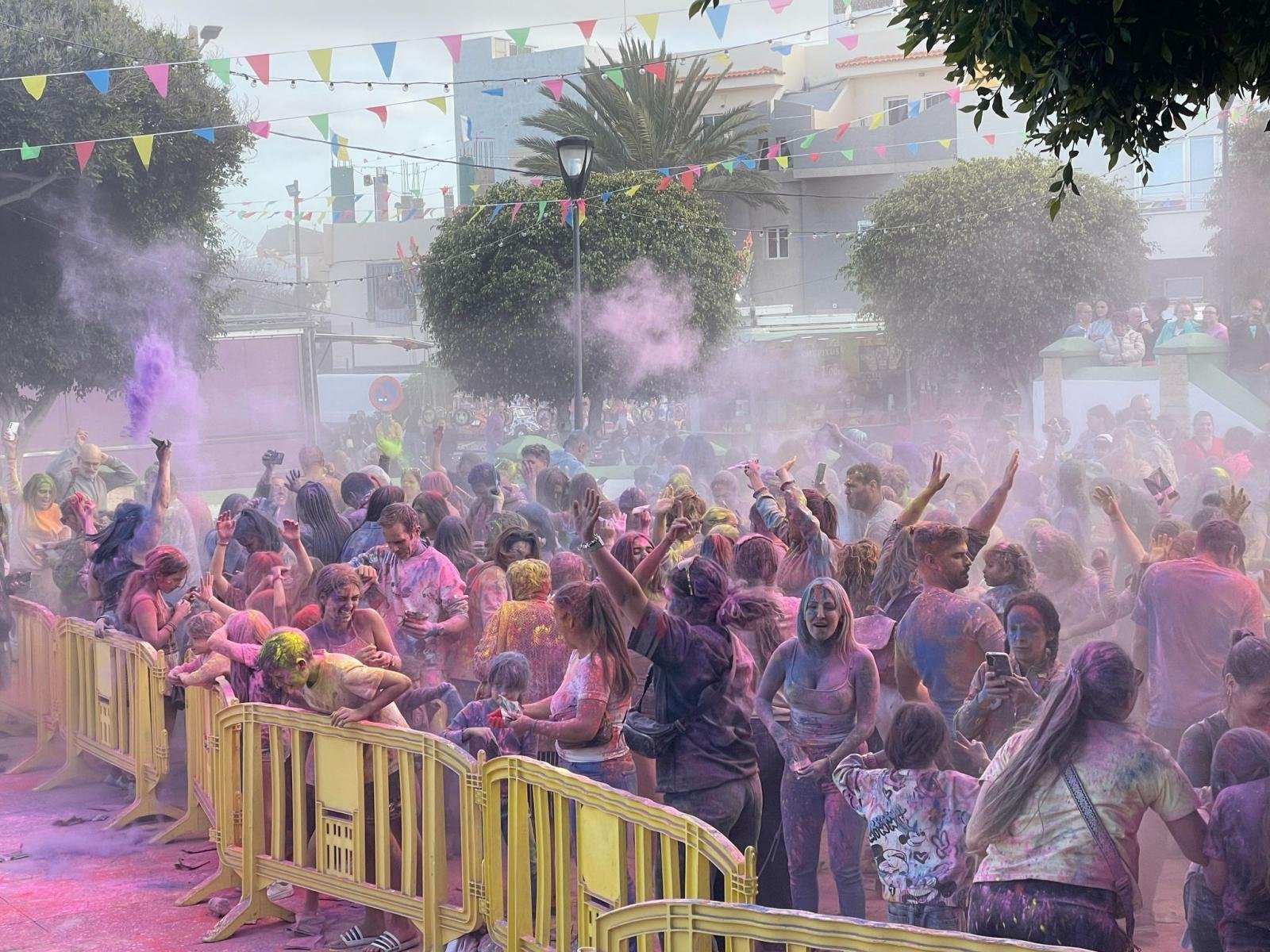 El barrio de El Calero en Telde vivió ayer una explosión de color en la plaza por sus fiestas en Honor a Nuestra Señora de Fátima con el día de la familia: Talleres, animación, cochitos y su fiesta Holi, increíble el ambiente y la participación de cientos de vecinas, vecinos y visitantes.