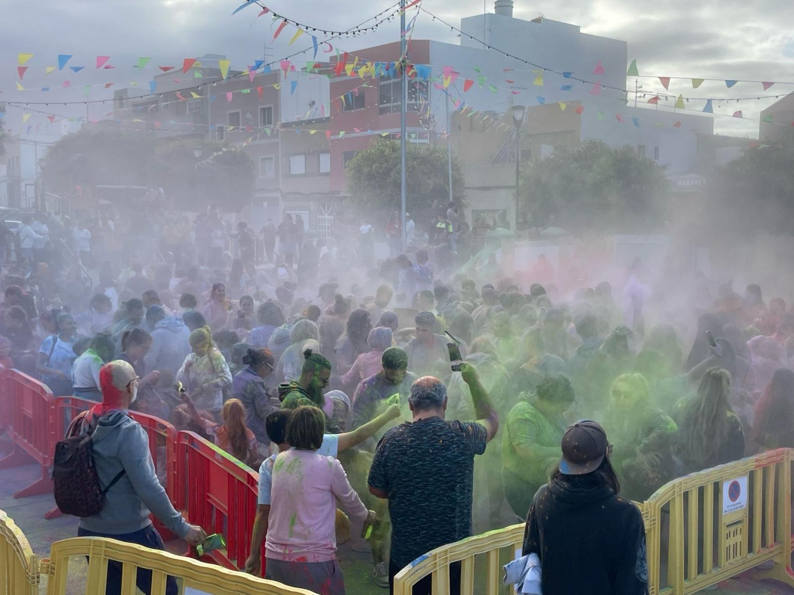 El barrio de El Calero en Telde vivió ayer una explosión de color en la plaza por sus fiestas en Honor a Nuestra Señora de Fátima con el día de la familia: Talleres, animación, cochitos y su fiesta Holi, increíble el ambiente y la participación de cientos de vecinas, vecinos y visitantes.