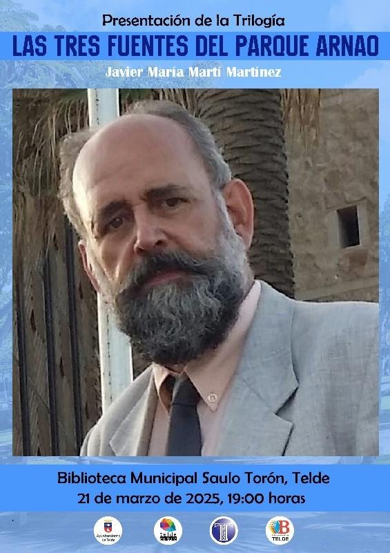 La Biblioteca Saulo Torón de Telde acogerá este viernes 21 de marzo, a partir de las 19.00 horas, la presentación de la trilogía Las tres fuentes del Parque Arnao, del escritor y editor Javier María Martí Martínez, colaborador habitual de ONDAGUANCHE.
