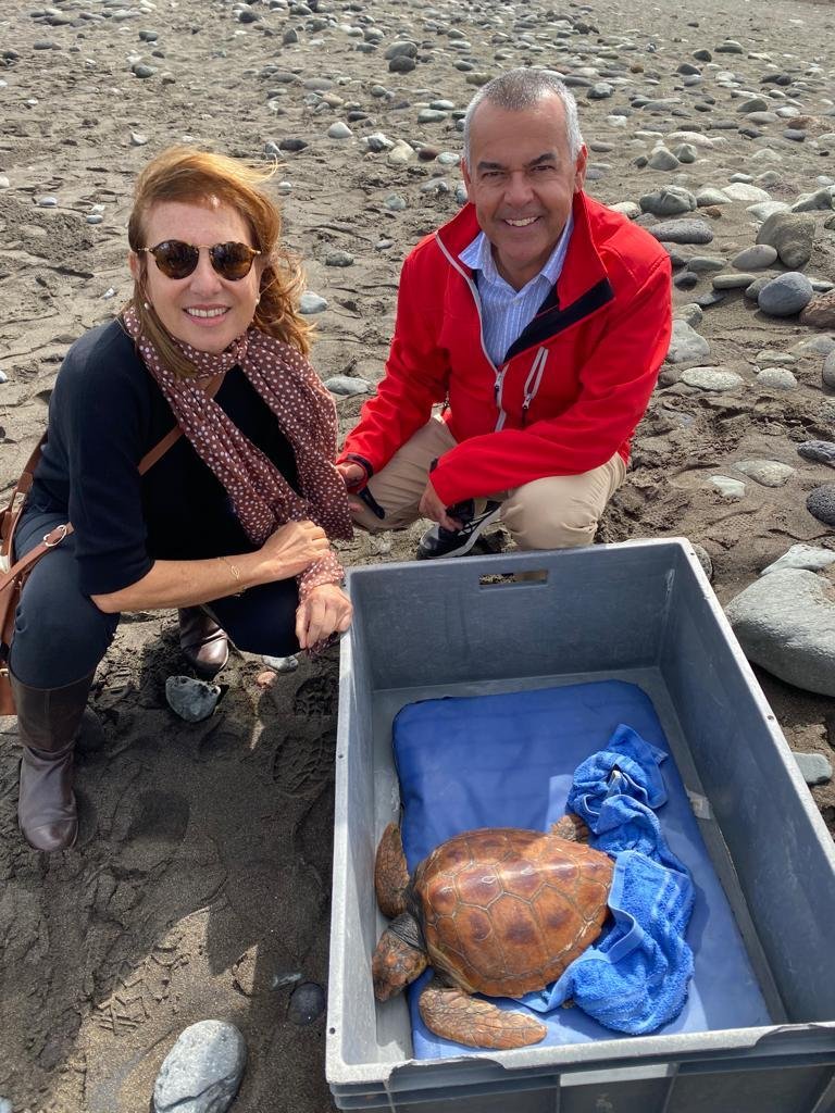Además, aprovecharon la ocasión para liberar a la tortuga Granca en el mar después de que se recuperara de sus heridas en el Centro de Recuperación de Fauna del Cabildo de Gran Canaria.