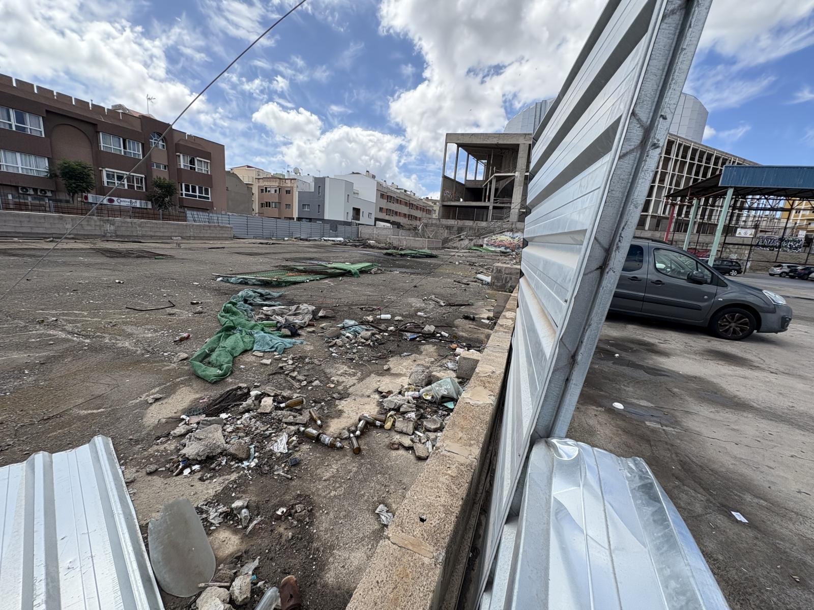 Porque llega abril de 2026, se mira el lugar, se enseñan las fotos y la realidad mete una bofetada sin manos. Lo que hoy aparece allí no es un parking a punto de arrancar ni una infraestructura en plena transformación. Lo que aparece es una estampa tercermundista impropia de un gobierno que se pasó meses vendiendo gestión como quien vende churros en feria. Hay basura. Hay restos. Hay escombros. Hay materiales tirados. Hay suciedad acumulada. Hay zonas degradadas. Hay accesos que dan pena. Hay una entrada enrejada que parece más propia de un decorado de ruina urbana que de una instalación estratégica para el centro comercial abierto de Telde.