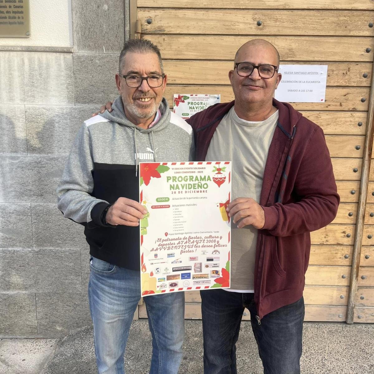 José Luis Macías (patronato de fiestas Atacayte), destacó a ONDAGUANCHE que “nos vemos este sábado, 28 de diciembre, a partir de las 10:00 horas en el VI Encuentro Solidario, en Lomo Cementerio – Telde. Gracias Fernando y y Pacuco Rosales, dos grandes personas del deporte que han querido aportar su granito de arena. Muchas Gracias a todos los artistas, empresas, vecinos e instituciones por su ayuda y colaboración, sin la cual esta acción no sería posible».