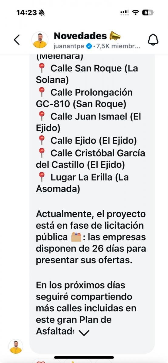 INSTAGRAM, NUEVO DESPACHO DE URBANISMO DE TELDE: EL ALCALDE ANUNCIA LAS CALLES QUE HAN SIDO LAS AGRACIADAS PARA SER ASFALTADAS COMO SI FUERAN ESTRENOS DE NETFLIX