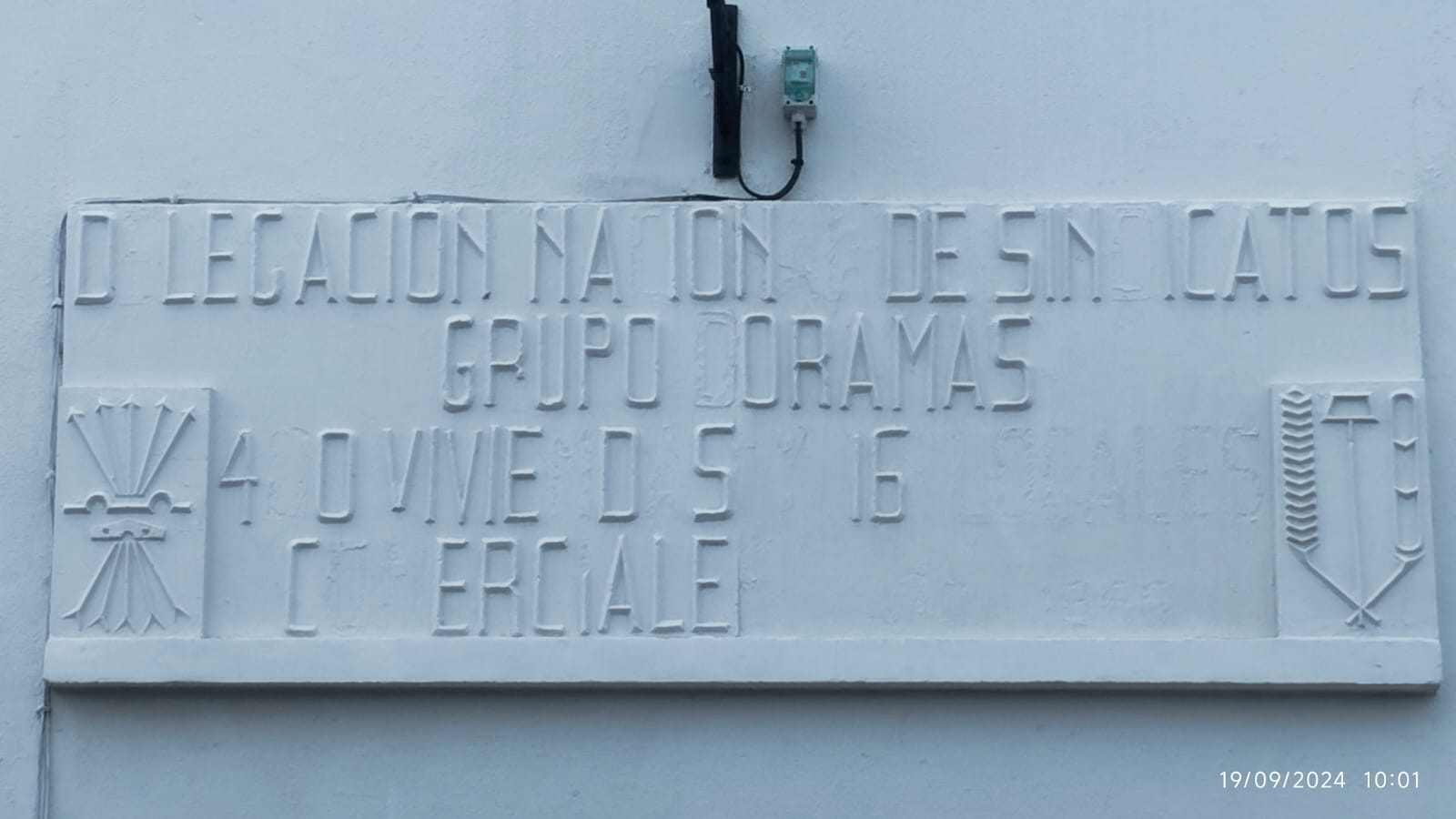 Lo cual, hemos observado emblemas que aún permanecen en las fachadas de estas viviendas destacando el yugo y las flechas, símbolos asociados al régimen franquista.