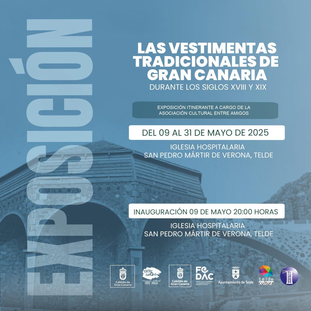 La sala de exposiciones de la Iglesia Hospitalaria de San Pedro Mártir de Verona, en la ciudad de Telde, acogerá del 9 al 31 de mayo la Exposición de Trajes Tradicionales de los siglos XVIII y XIX de la isla de Gran Canaria. Esta muestra es una iniciativa de la Asociación Cultural Entre Amigos, del Valle de Jinámar.
