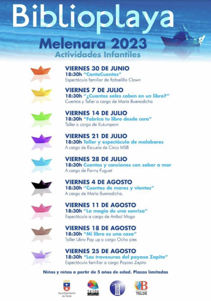 Este programa de actividades, que se celebrará cada viernes, a las 18.30 horas, hasta el 25 de agosto, acogerá en el próximo encuentro (este viernes 14 de julio) un taller donde los más pequeños aprenderán a crear un libro desde cero, de la mano de Kutumpan, la editorial teldense organizadora del mismo y fundadora de la primera escuela de escritores para niños y niñas en la ciudad.