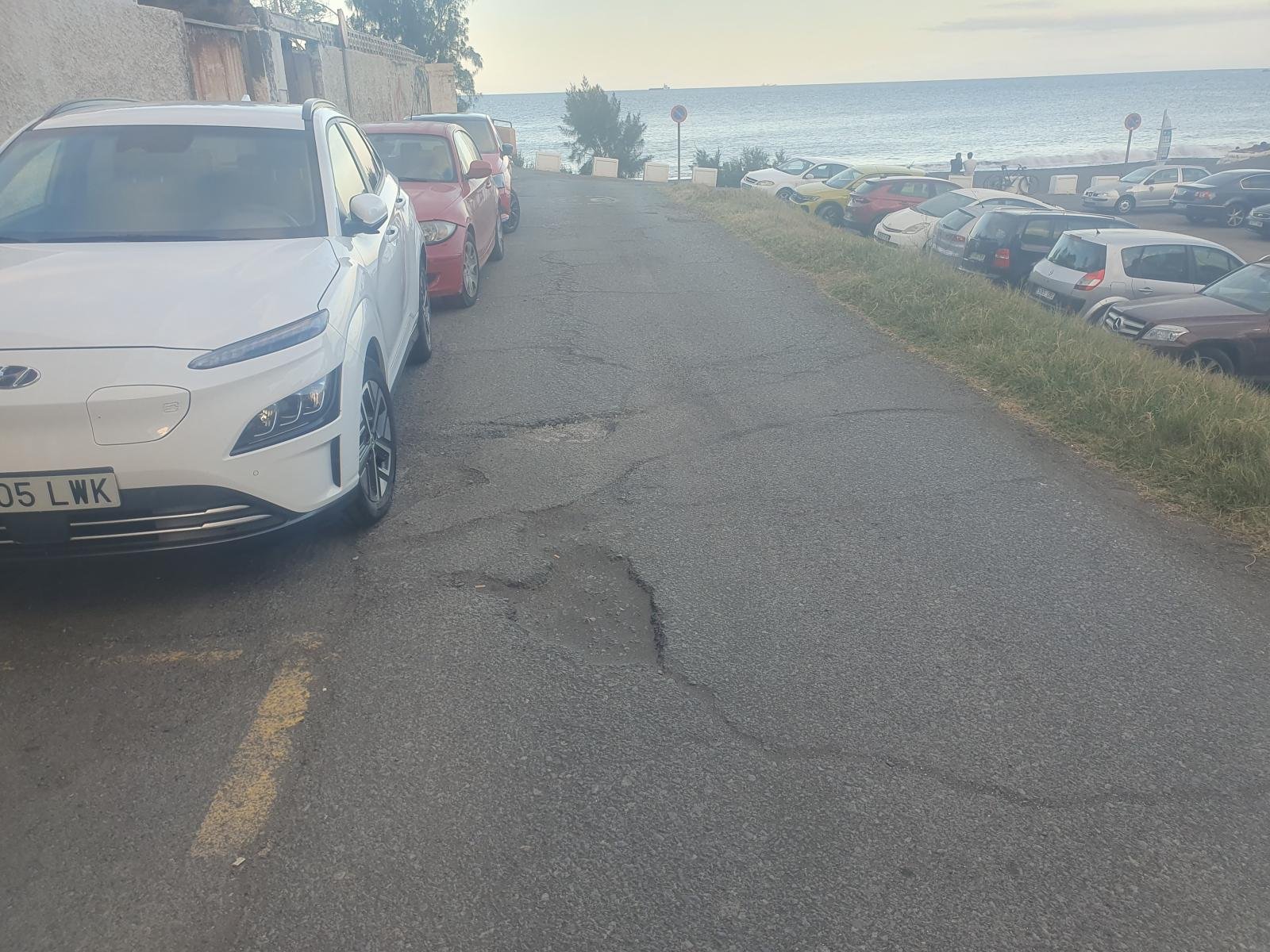 Vecinos del núcleo costero de La Garita en Telde, denuncian a través de ONDA GUANCHE el serio peligro que supone para vehículos y transeúntes, el estrechamiento que se produce al inicio de la calle Lila viniendo desde la playa, motivado por el terreno sin vallar que se utiliza como aparcamiento por un lado, y el saltarse la prohibición de aparcar los vehículos por otro. Además, el pésimo estado del asfalto en este punto dificulta aun más si cabe todo.