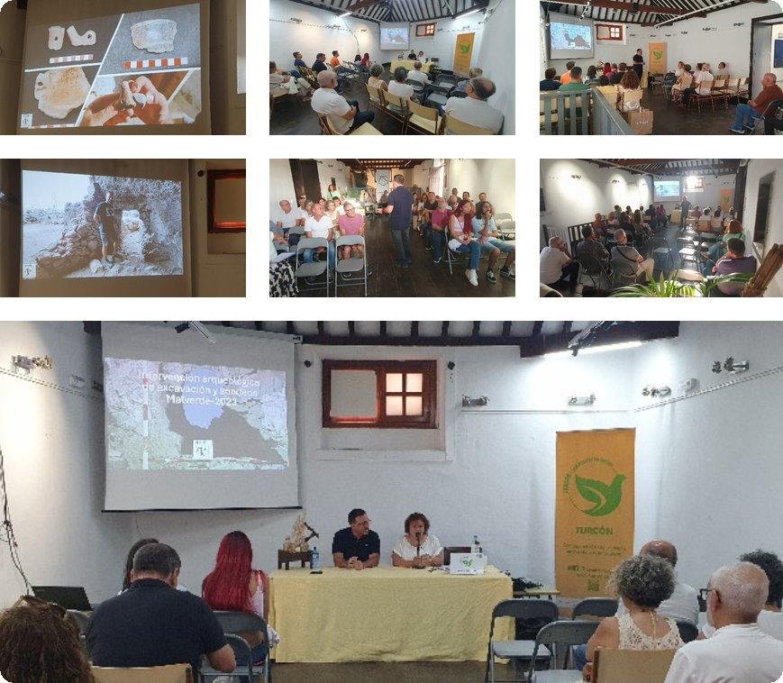 Le escuchaba un público interesado por conocer el desarrollo de la investigación y también por la oportunidad que significaba para sumergirse en el mundo prehispánico de un Telde y Tara aborigen, en una Gran Canaria que resuena de historias y leyendas de faycanes y guanartemes nativos. Descubrir el yacimiento arqueológico de Malverde nos revela como comprender la cultura y el legado de aquellos que poblaron estas tierras mucho antes de la llegada de los colonizadores, es ahí donde Abel Galindo derrochó conocimiento en su disertación y en las contestaciones a las preguntas en el amplio coloquio posterior a su charla profusamente documentada con imágenes y croquis del trabajo de excavación. El interés por el tema mantuvo un animado encuentro entre el conferenciante y los asistentes sobre las etapas y raíces de esta primera intervención y sondeos en las Cuevas y exteriores de Malverde.