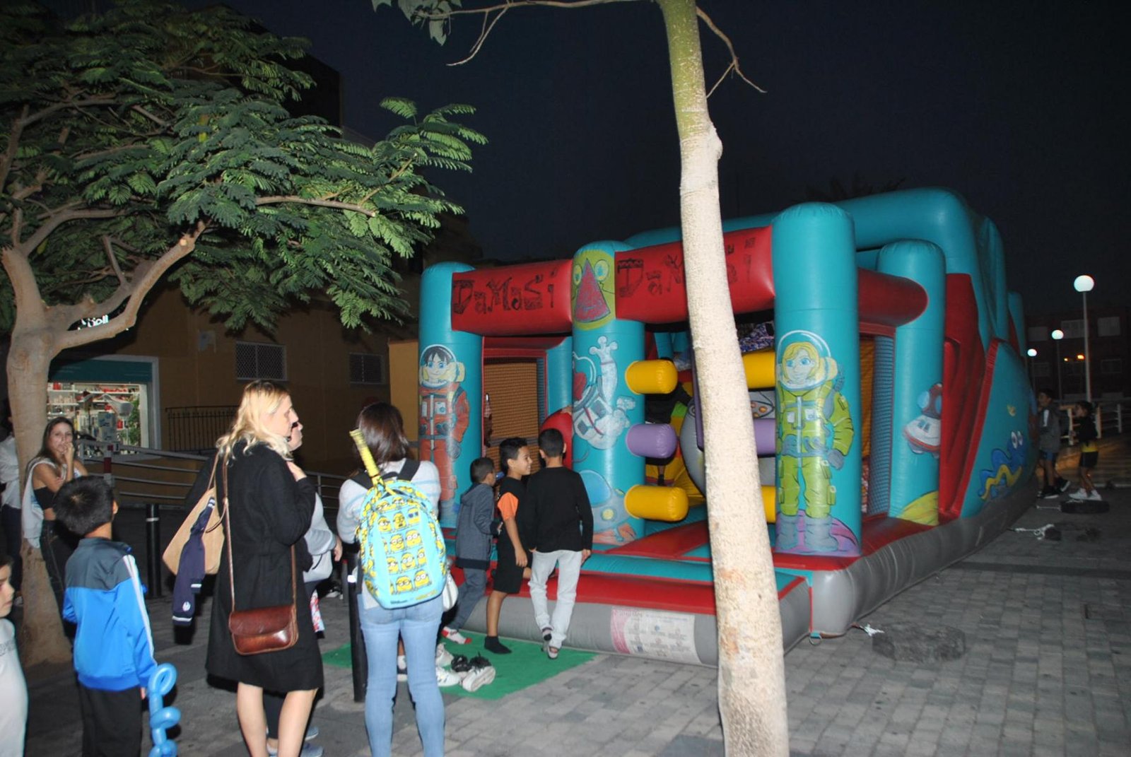 La zona comercial abierta de la Avenida de Gáldar, en San Fernando de Maspalomas, centralizó este viernes los actos festivos organizados por el Ayuntamiento de San Bartolomé de Tirajana para escenificar el encendido de la luminotecnia navideña que se ha instalado en todos los barrios del municipio.