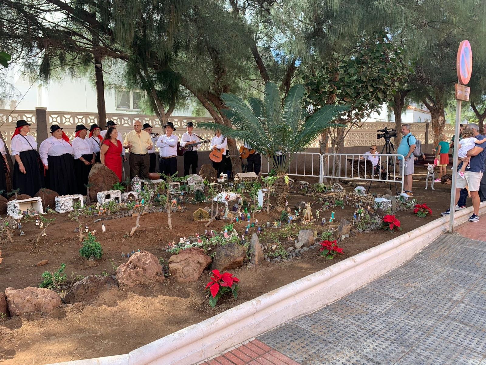 Este mediodía se inauguró el nacimiento canario al aire libre montado con material reutilizado en el espacio ajardinado público de la calle de Palmera, en La Garita, por el Patronato de Fiestas La Sal que dirige hace décadas Julia Martel.