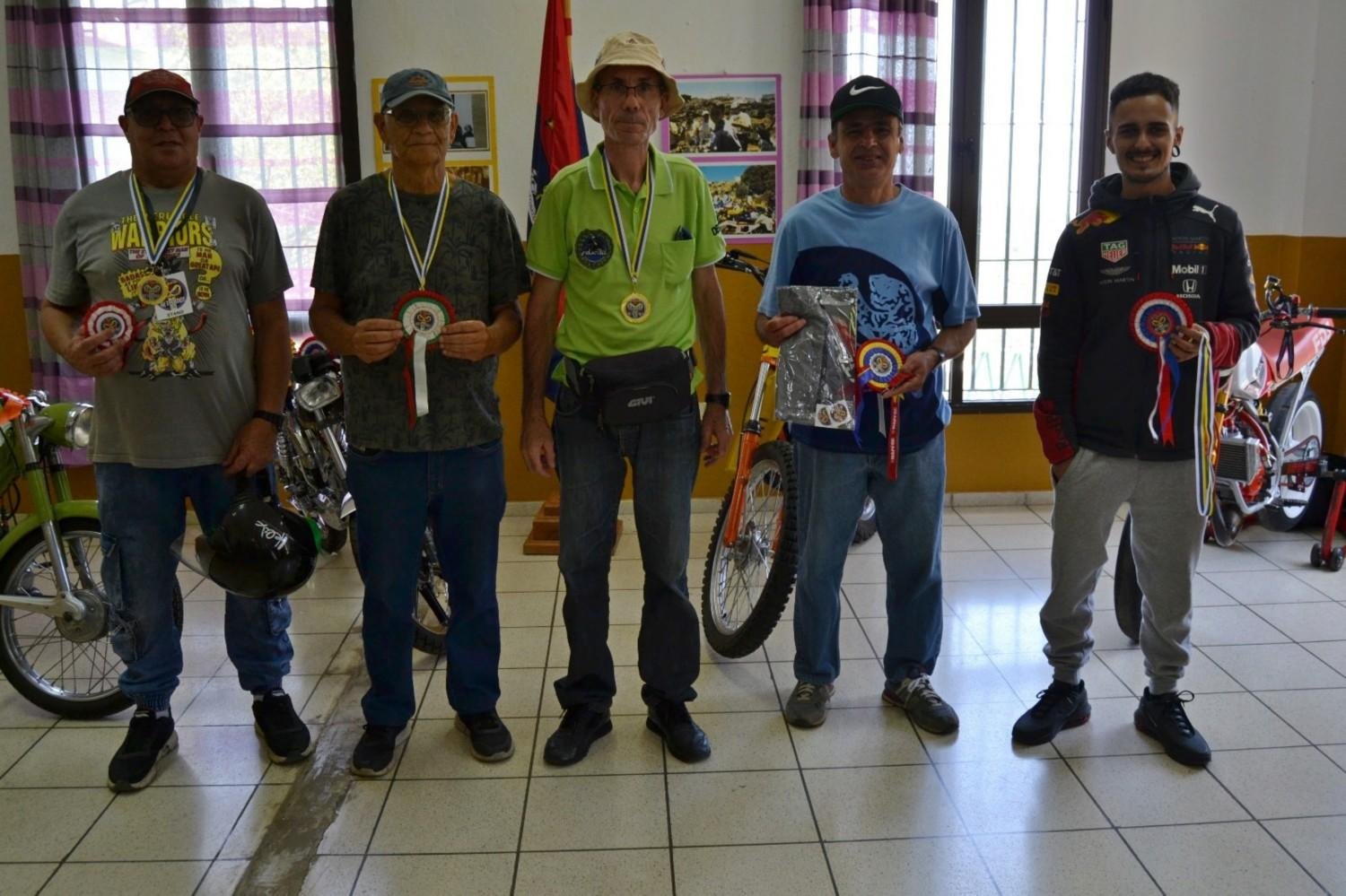 Las motos se exhibieron en el local social, donde se presentaron las mejoras y transformaciones para el concurso. El ganador oficial fue Diego de Arucas, con su FDS y una imagen muy lograda. Otros amigos lo acompañaron en la foto oficial, recordando ediciones anteriores. Mientras, el local social se transformó en una sala de fotografías antiguas, con imágenes de la gente del barrio en los sesenta y del primer enducross de los noventa, evocando nuestro pasado juvenil.