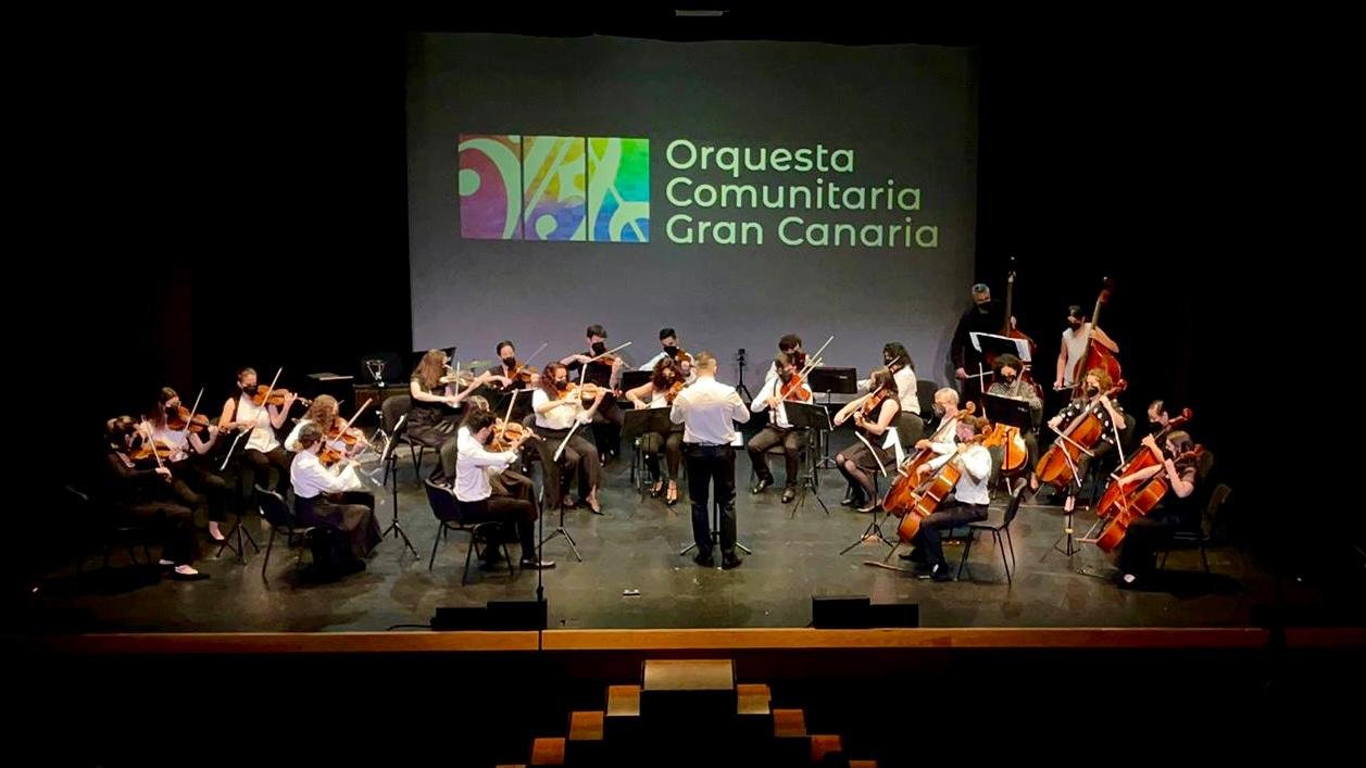La Orquesta Comunitaria de Gran Canaria triunfó este sábado en el Teatro Municipal Juan Ramón Jiménez -que colgó el cartel de ‘aforo completo’- con su primer concierto.