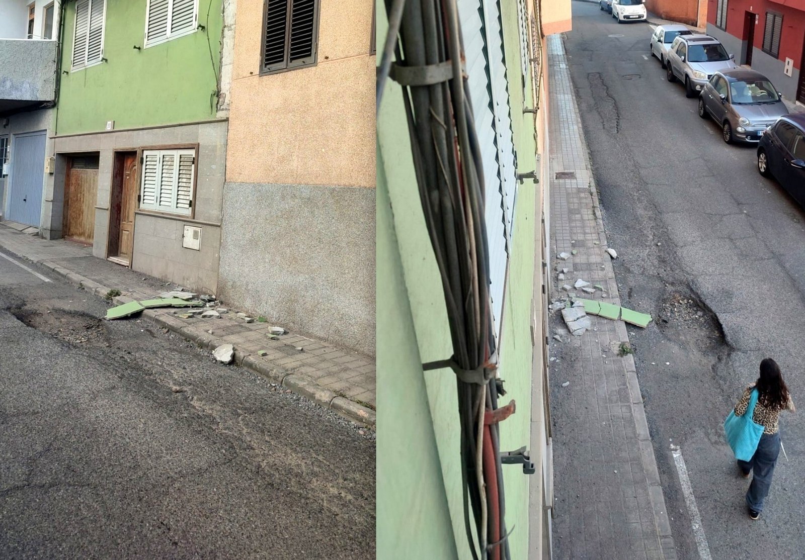 Los vecinos alertaron esta tarde de la caída de cascotes de la fachada de un edificio situado en la calle Estefanota de La Garita (Telde). Los Bomberos y la Policía Local acudieron al lugar para minimizar el riesgo para transeúntes y vehículos.