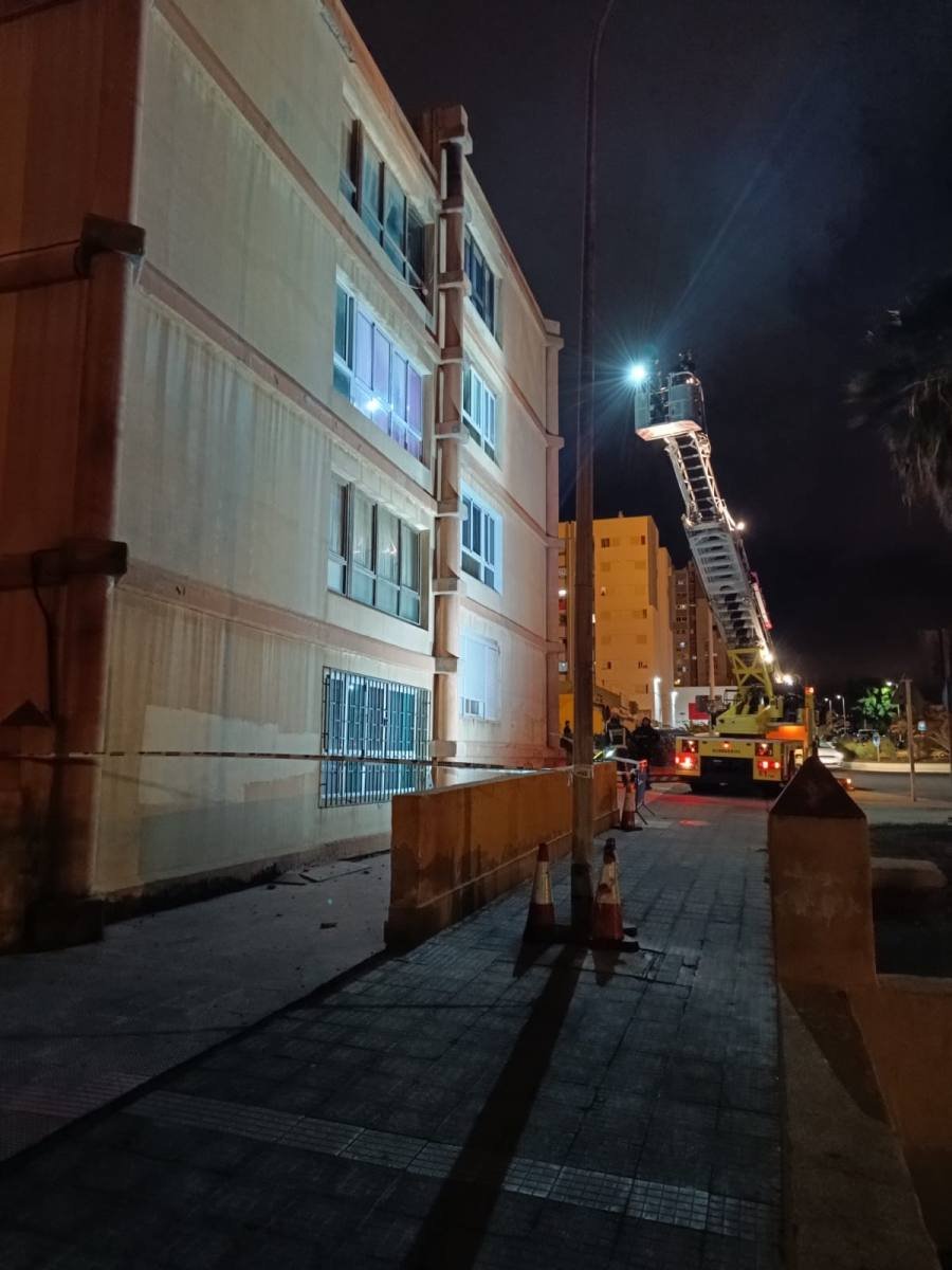 «Ya por la noche, y con la actuación de bomberos del consorcio de emergencia y policía local de Telde se procedió al cierre del perímetro, así como a los accesos a la asociación de vecinos la solidaridad del valle y también a la unidad alimentaria. Este hecho pone de relieve la magnitud del deterioro que sufren estos edificios y el peligro constante para los transeúntes y vecinos de la zona».