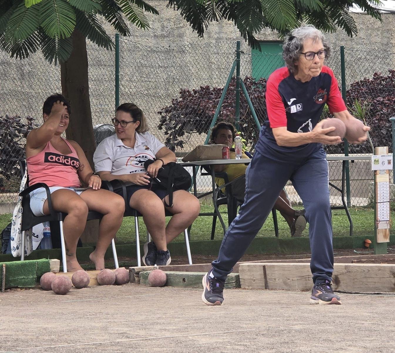 El concejal de Actividad Física y Deportes del Ayuntamiento de Telde, Cristhian Santana Caballero, felicita al Club de Bola Canaria y Petanca Gerardo Rodríguez tras proclamarse subcampeón de la Liga Insular Femenina de Bola Canaria 2024, competición celebrada en las instalaciones del Ciudad de Arucas, bajo la organización de la Federación Gran Canaria de Bola Canaria y Petanca.
