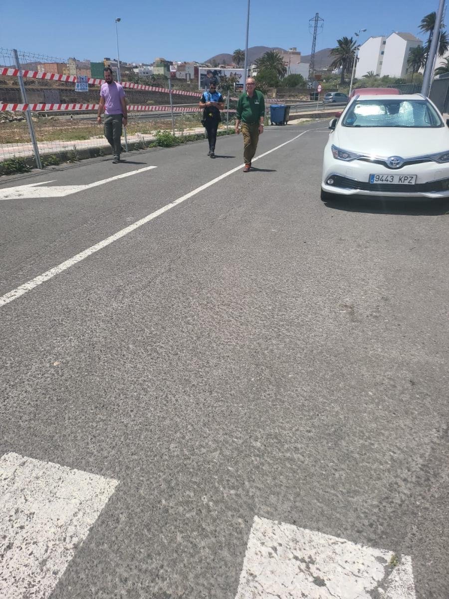 Tras su inspección, confirmando la denuncia de Leales.org, Calabuig contactó con el jefe de la Policía Local del Ayuntamiento de Telde Félix Ramos desplazándose una pareja de agentes para ordenar la paralización de la obra en la urbanización Arauz, a la espera de un estudio técnico y ambiental más profundo.