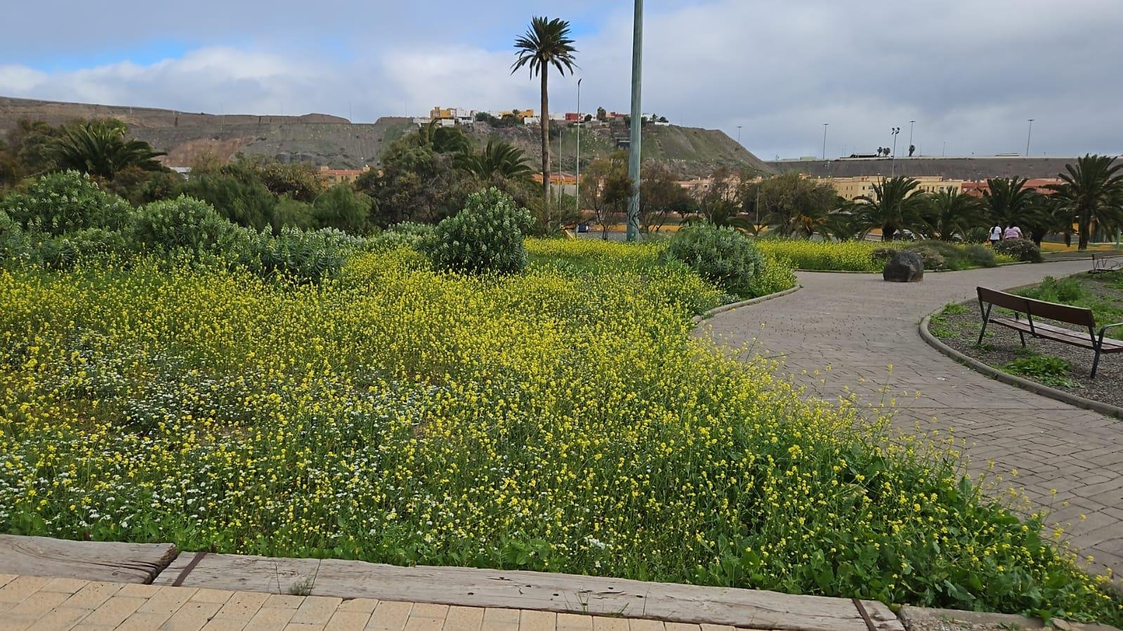 No solo en las partes llanas, sino que las laderas han visto una proliferación del verde que hace un paisaje de película de lugares del Norte de España y Europa. El Ayuntamiento está colaborando en dejar ese manto verde intercalado con flores de Jardín y flores de las plantas espontaneas haciendo tener una estampa de los parques espectaculares para fotografiar.