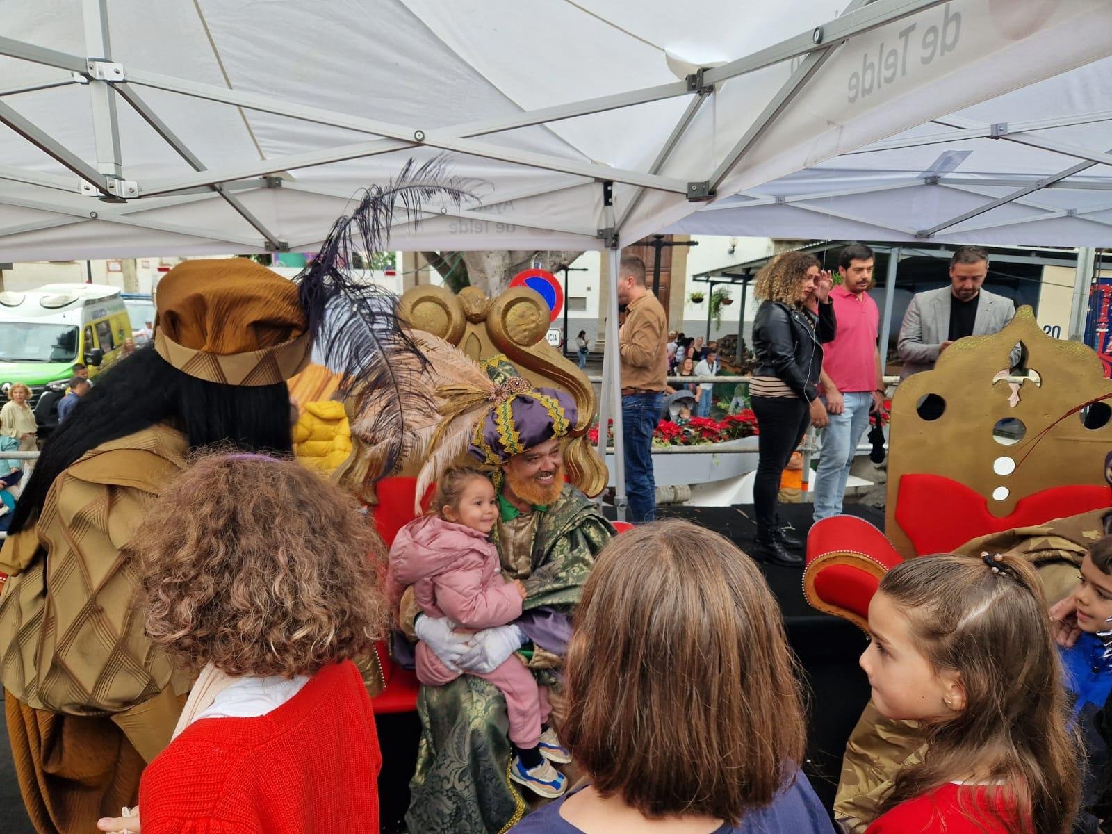 Sus Altezas también adoraron al niño Jesús del belén de Los Llanos y atendieron a los pequeños sentados en sus tronos, antes de marcharse a descansar. Esta tarde volverán a salir en la tradicional cabalgata de Reyes Magos de Telde, que se pondrá en marcha a partir de las 17.00 horas, desde las Ramblas de Pedro Lezcano, y que, como datos a destacar, este año duplicará su recorrido y terminará en San Juan.
