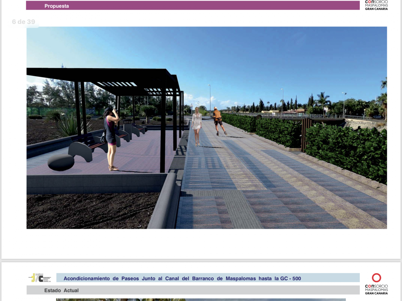 Recuperar los márgenes del Barranco de Maspalomas para su conversión en dos paseos homogéneos y modernos, dotados con carriles bici y peatonal habilitados para el paseo y la práctica deportiva, con diversas zonas confortables de sombra y descanso, conllevará una importante actuación de reposición y cambio en los firmes y escalinatas, en el sistema de alumbrado, los vallados del cauce, los dos puentes que lo atraviesan, el cerramiento exterior de los complejos turísticos y residenciales de la zona, y también en la cuidadosa reforestación vegetal y arbórea que habrá que ejecutar en la misma.
