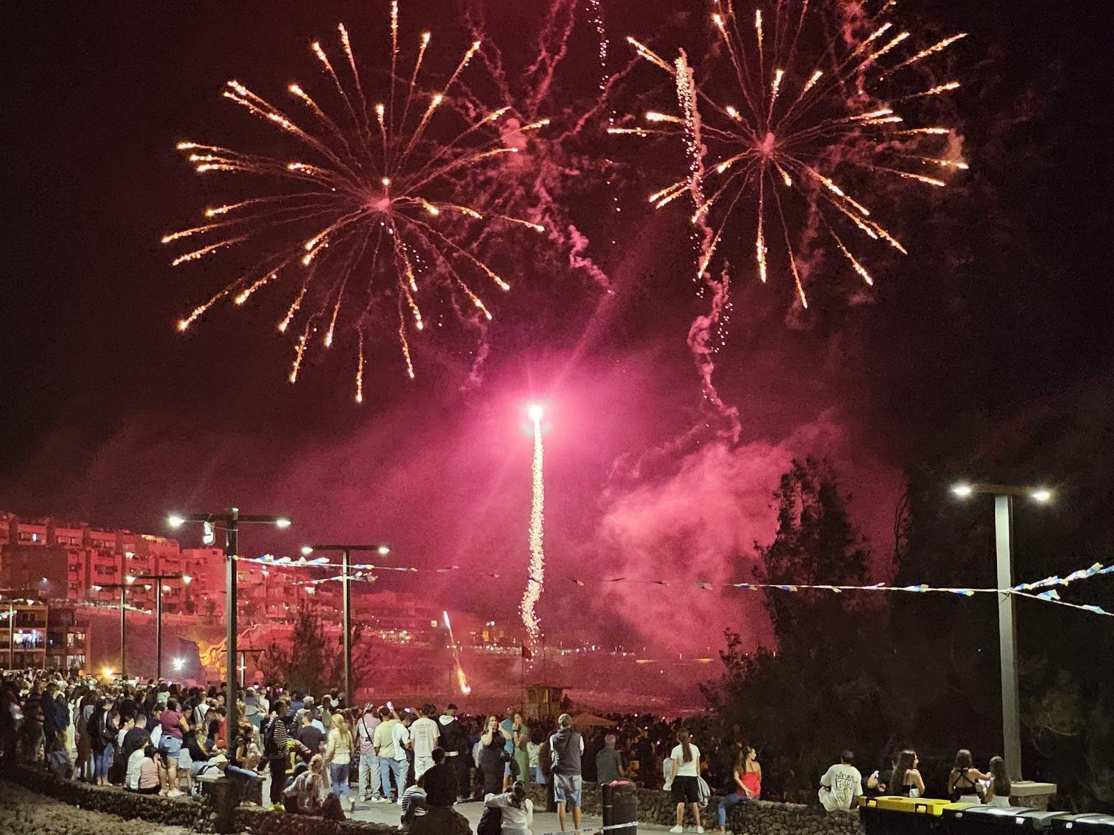 Además de las tradicionales palmeras canarias, los elementos más usuales y los nuevos efectos que sorprendieron a un público perplejo por la innovación, a cargo de la empresa Piromart, los fuegos en esta edición destacaron también por la relevancia que obtuvieron en el mar. Así, las aguas de Melenara se vistieron con más luz y color que nunca en una noche en la que reinó el buen ambiente y las ganas de pasarlo bien en compañía de familiares y amigos. Los asistentes en esta edición, que superaron considerablemente en número a los del año pasado, se mantuvieron en un aplauso de larga duración tras la finalización del gran espectáculo.