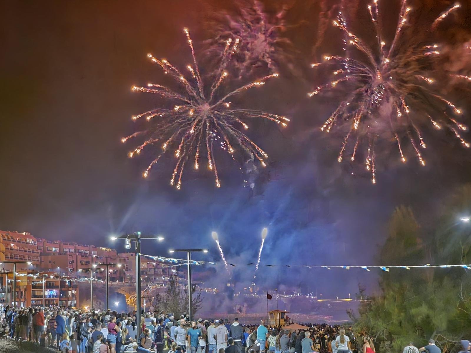 El día grande de las Fiestas de Melenara, organizadas por el patronato Chinchorro, ha concluido por todo alto con la concentración de unas 42.000 personas, entre teldenses y visitantes, que no quisieron perderse el espectáculo pirotécnico aéreo y marítimo que iluminó el cielo del barrio costero este sábado. Un total de 307 kilos de pólvora dieron paso a 16 minutos de fuegos artificiales que no dejaron indiferentes.
