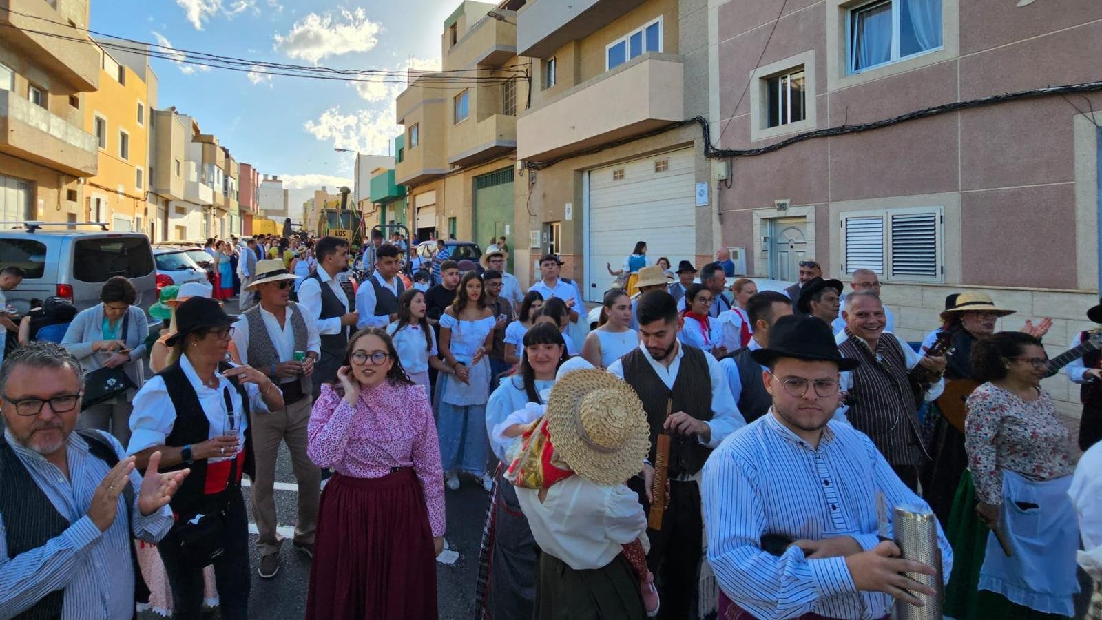 Durante la romería, los participantes pudieron disfrutar de pellas de gofio, papas arrugadas y bocadillos de chorizo de Teror, acompañados por música y cánticos y un inmenso fervor que unió a toda la comunidad que forma el barrio de El Calero.